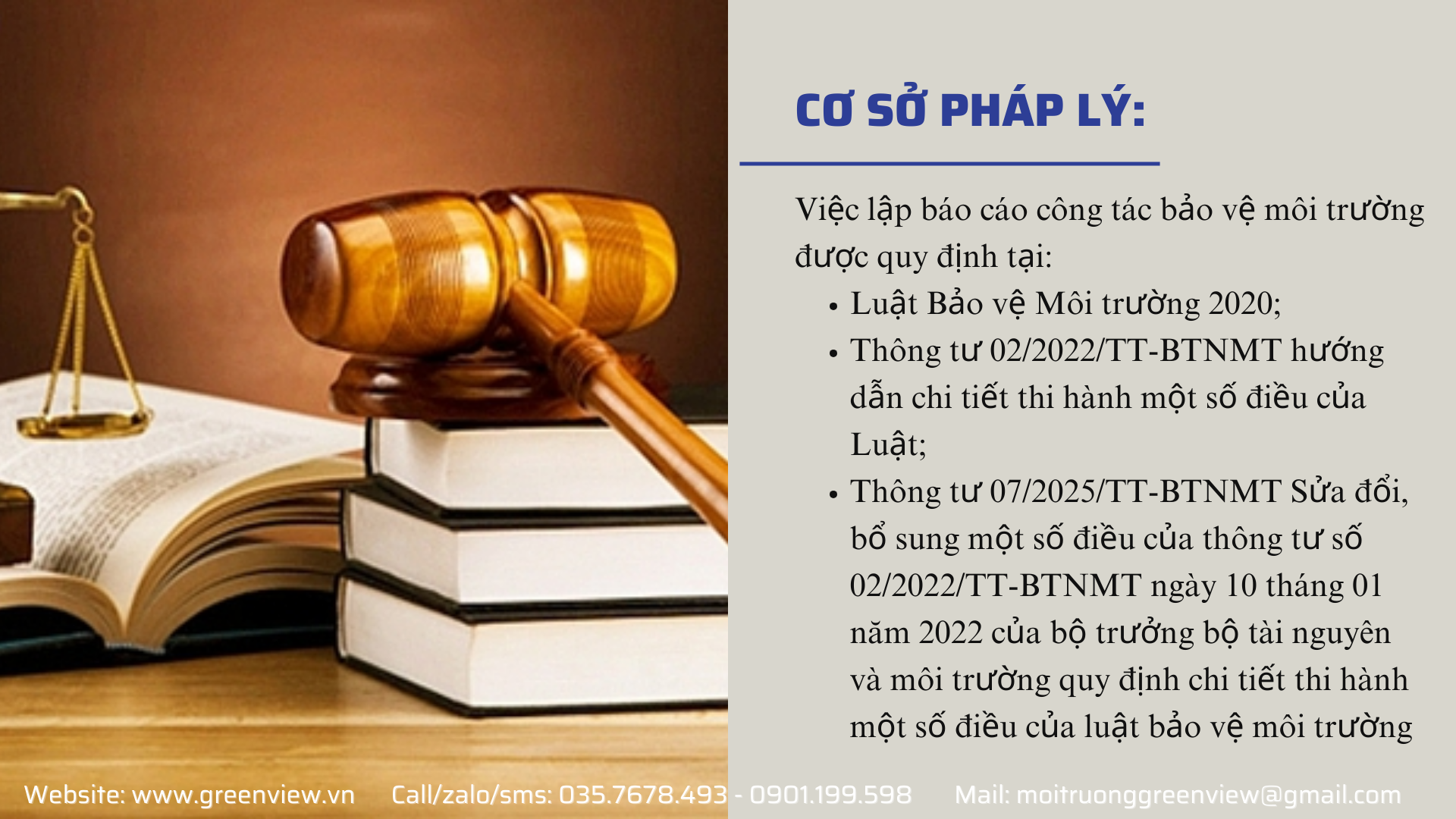 Theo Luật Bảo vệ môi trường 2020 và Thông tư 02/2022/TT-BTNMT, báo cáo công tác bảo vệ môi trường là tài liệu bắt buộc đối với các tổ chức có hoạt động sản xuất, kinh doanh, dịch vụ có tác động đến môi trường. Báo cáo phải thể hiện đầy đủ hiện trạng môi trường, kết quả quan trắc định kỳ, công tác quản lý chất thải, cũng như biện pháp khắc phục nếu có sự cố môi trường phát sinh.