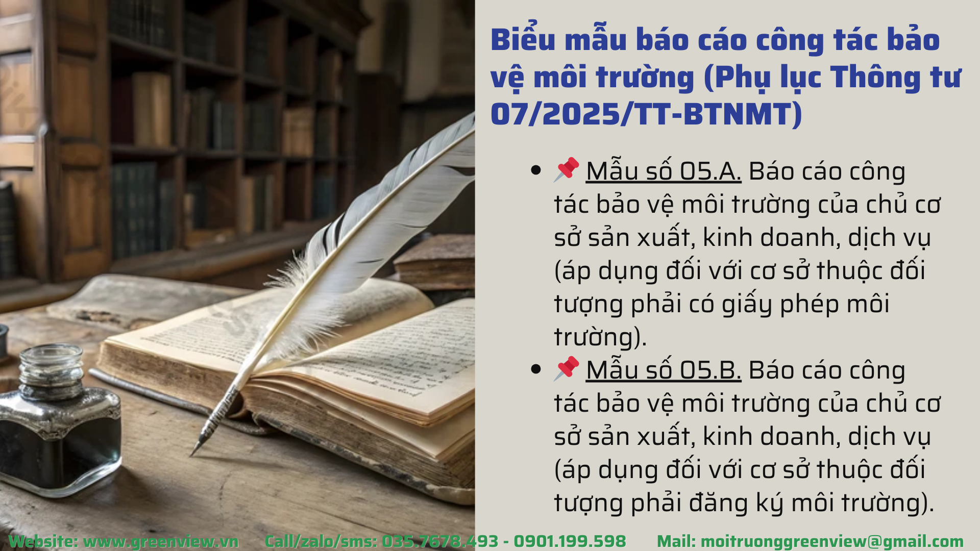Mẫu báo cáo mới nhất được ban hành kèm theo Thông tư 07/2025/TT-BTNMT, thường bao gồm các mục chính: Thông tin chung về cơ sở, Tình hình hoạt động, Kết quả thực hiện công tác bảo vệ môi trường, Các sự cố, và cam kết thực hiện.