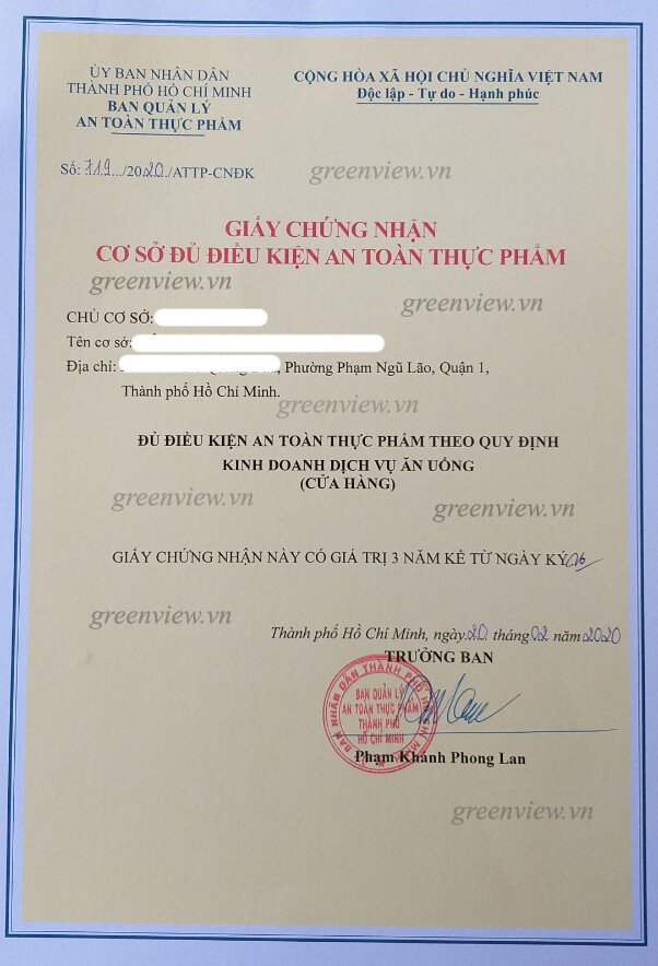 Quy trình cấp giấy chứng nhận vệ sinh an toàn thực phẩm tại GreenView