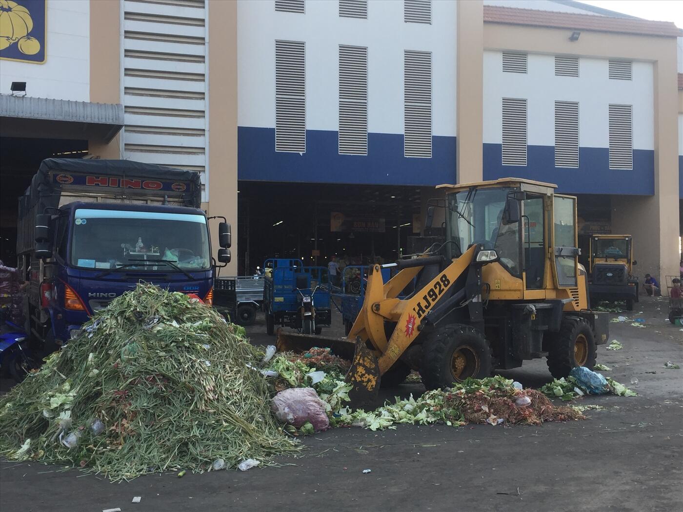 Thu gom chất thải hữu cơ sau phân loại tại chợ đầu mối nông sản Bình Điền (Quận 8, TP.HCM)