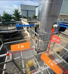 - Thiết kế: Sàn thao tác phải có cầu thang với lan can an toàn cũng như lan can bảo vệ xung quanh vị trí lấy mẫu.